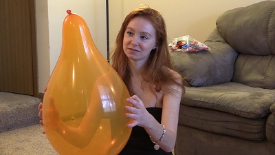 camera. She plays with the balloons and then eventually pops each one